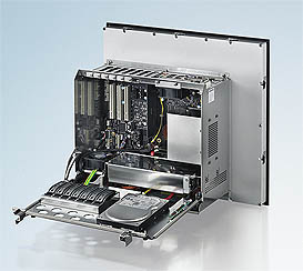 The 7-slot ATX Panel PCs CP65xx can be equipped with 12-, 15- or 19-inch TFT display, as a monitor without keys or with different types of keyboards. A touch screen or touch pad is optionally available. A large number of push-button extensions are also available.