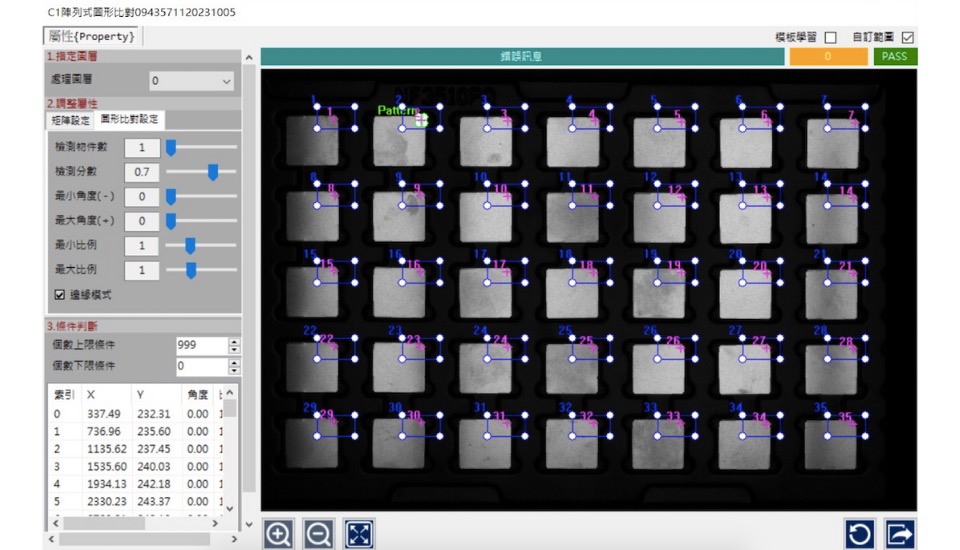 * 陣列式圖形比對,輕鬆設置一個樣本即可與多個料件進行比對檢查