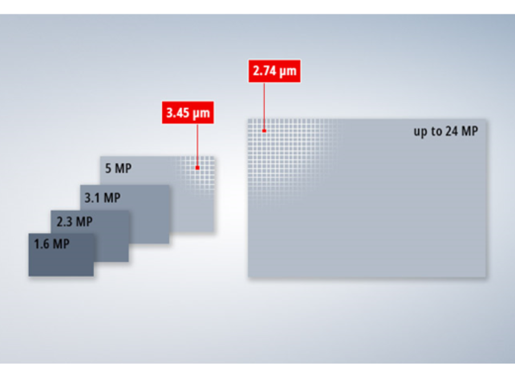 - 2.3 至 5 百萬畫素,採用經驗證的 3.45 µm 畫素間距