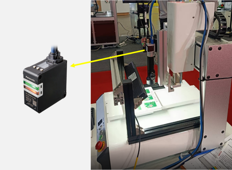 客戶以我司代理 Panasonic HL-G2 位移感測器,透過感測器面板操作功能設定取樣範圍,來偵測 Tray 的凸點以便觸發相機作 PCB 瑕疵判斷。
